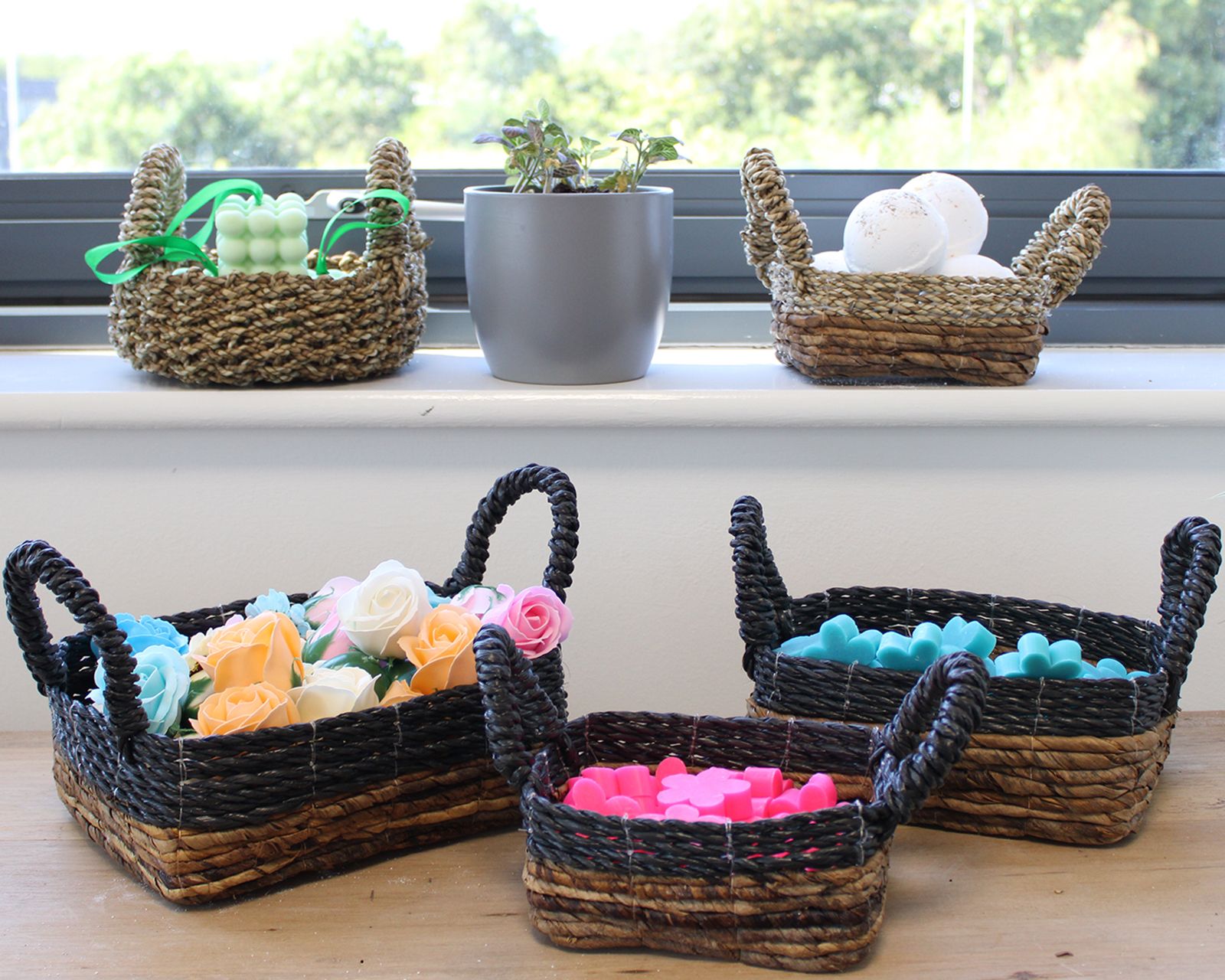 Banana Leaf & Abu-Abu Raffia Square Basket- Set of 3