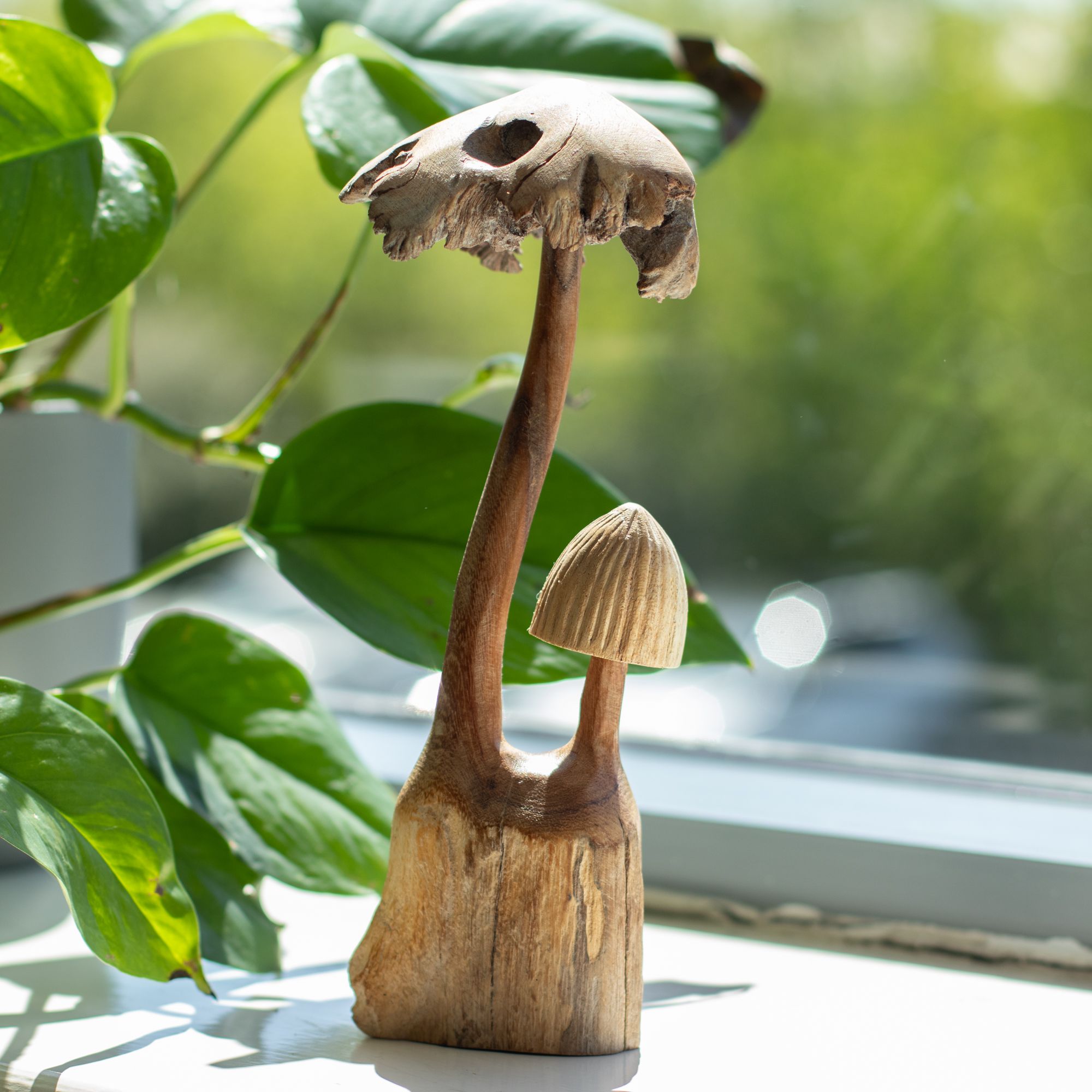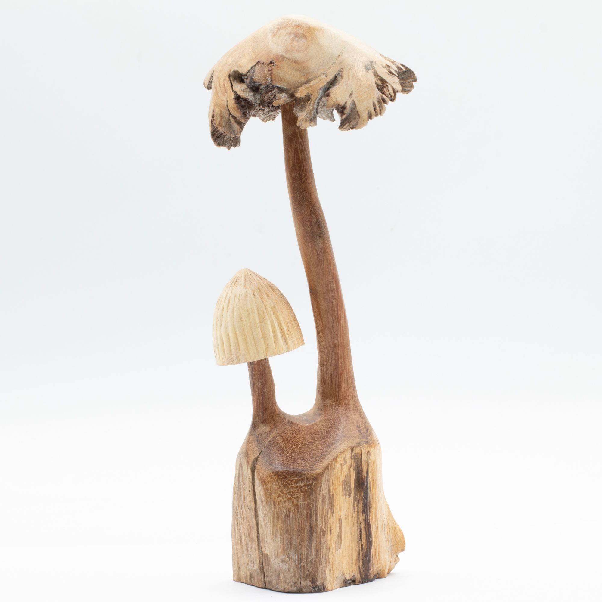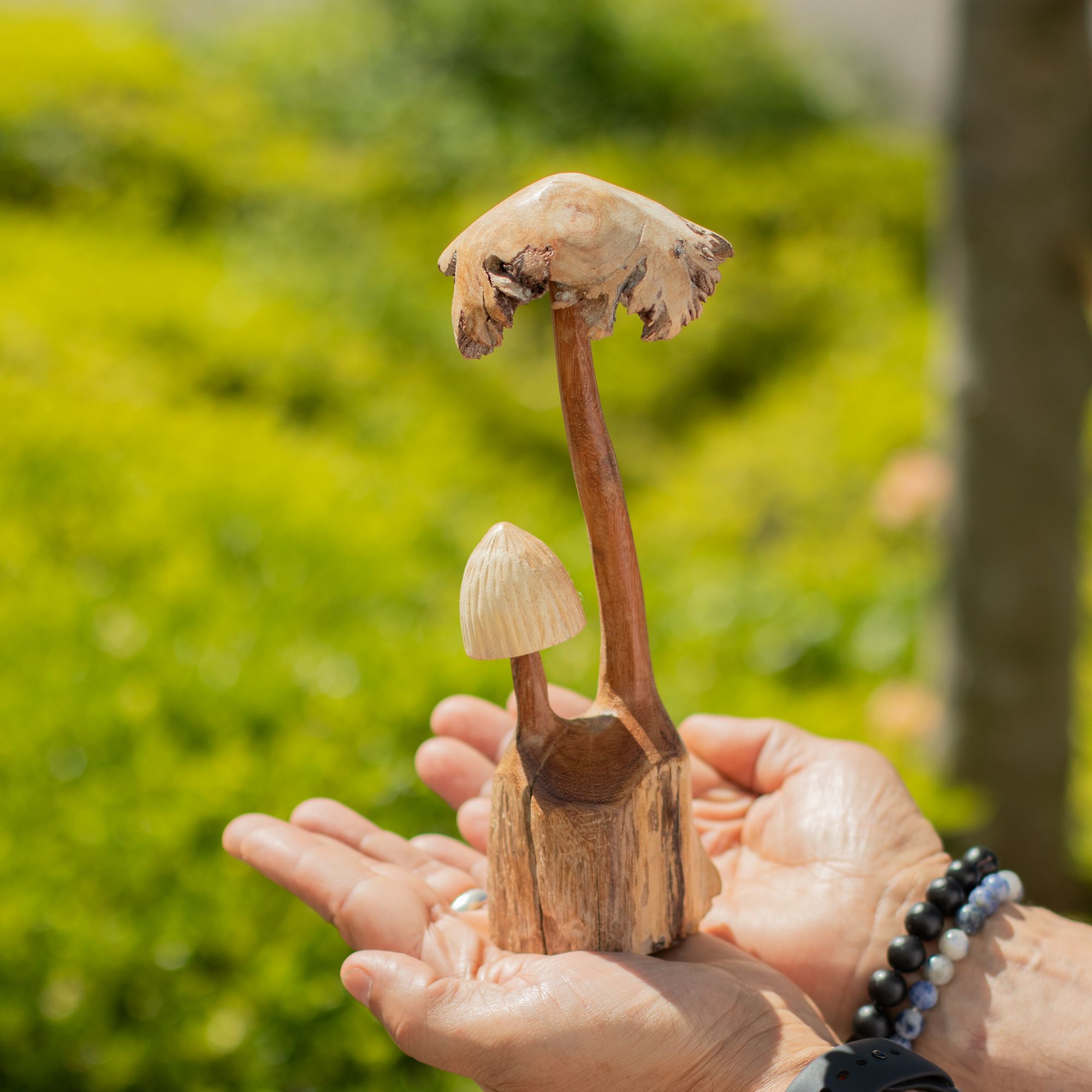 Handmade Parasite Wood Art Carving – Set of Two Mushoorms