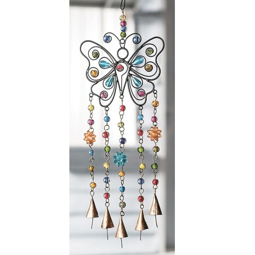 Add colour and gentle sound to your space with this handmade butterfly windchime, crafted from multi-coloured beads and iron. Its delicate design catches the light beautifully while creating soft, soothing chimes in the breeze.